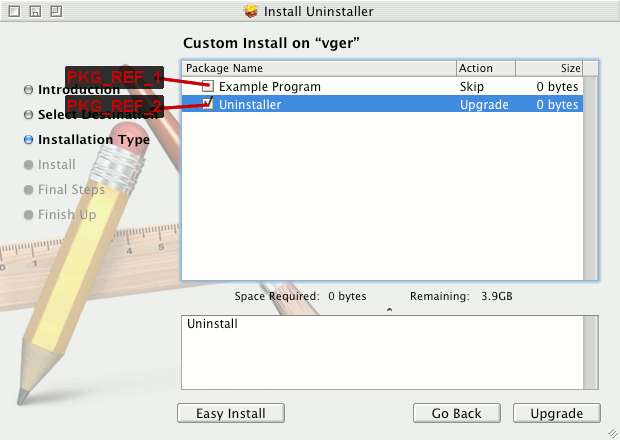 Regardless of these issues, however, this solution does provide a more fitting end-user experience, in that it provides the proper uninstall message. Now, in regards to the actual implementation of this solution, provided is both my compiled Installer plugin which can be inserted into a metapackage, as well as the Xcode project source for the plugin: